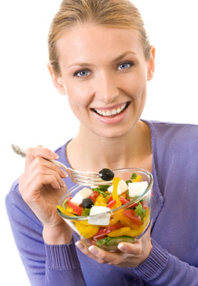 به اندازه یک کاسه سالاد درست کنید، این سالاد می تواند شامل کاهو، پیاز و گوجه فرنگی باشد . سعی کنید در سالادتان از مواد کم کالری استفاده کنید تا بتوانید مقدار بیشتری بخورید. این سالاد را با روغن زیتون، سرکه بالزامیک، نمک و فلفل طعم دار کنید.