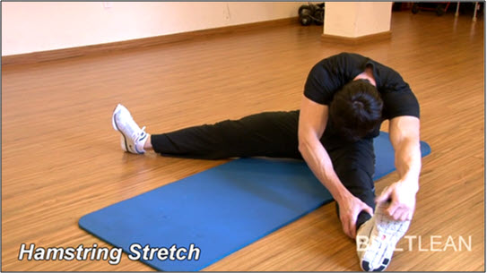 ۳) کشش عضلات لگن: در حالی که کف پاهایتان روی زمین است و زانوهایتان ۰۹ درجه خم شده است،بر روی زمین بنشینید سپس با حفظ همین حالت به پشت دراز بکشید، کف پای راست خود را بر روی زانوی پای چپ بگذارید و سپس پای چپ خود را با حفظ زاویه ۰۹ درجه زانو، بهآرامی بالا بیاورید.