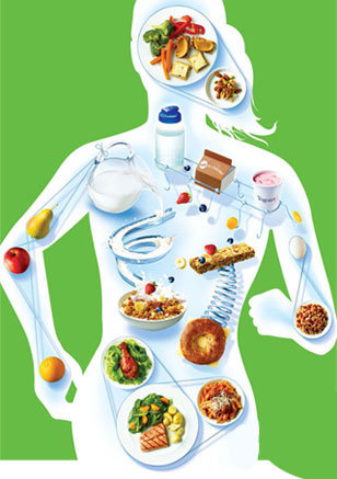 * غذا باید در یک ساعت مشخص و ثابت و در محیطی آرام صرف شود تا هضم آن راحت تر انجام گیرد . مقدار مصرف رژیم غذایی ورزشکار برحسب نیاز کمی و کیفی فرد تنظیم می شود . با توجه به اهمیت تعادل وزن می توان این مطلب را توجیه کرد . میانگین نیاز روزانه یک ورزشکار بین ۳ هزار تا ۳ هزار و ۵۰۰ کیلوکالری انرژی است . اما باید بدانیم که نیاز افراد بر حسب وضع جسمانی متغیر است و بعضی از افراد برای این که به حال تعادل درآیند ، باید تا ۵ هزار کیلوکالری بیشتر انرژی دریافت کنند ، در صورتی که عده ای دیگر با ۲ هزار و ۵۰۰ کیلوکالری یا کمتر بحال تعادل می رسند . ورزشکاران باید به متخصص تغذیه خود کمک کنند تا او بتواند نیاز کلی آن ها را برآورد کند .