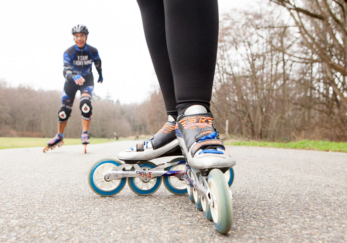 توضیح اینکه مسابقات Down hill با کفش ساق بلند انجام می شود، مسابقات ماراتن به تازگی باکفشهای چهار چرخ ۱۰۰ میلیمتر نیز انجام می شود و در مسابقات سرعت کفشها ساق کوتاه ولی دارای چفت می باشند ولی در کفشهای استقامت بدون چفت می باشند.