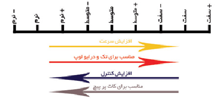 گروه(OFF+……DEF-): این تقسیم بندی تقریبا در میان تمامی تولید کنندگان چوب مشترک می باشد کلمه OFF مخفف کلمه ی Offensive می باشد به معنای حمله ای DEF مخفف کلمه Defensive می باشد به معنای دفاعی همانطور که در جدول زیر مشاهده می نمایید.