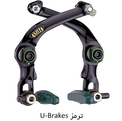 ترمز u-brake : به طور کلی این نوع ترمز یک واحد مستقل بوده و به وسیله یک پیچ مرکزی به دو شاخه جلو وصل می شود. ترمز u-brake یک واحد مستقل می باشد و تفاوت آن با caliper این است که اهرم این ترمز روی بدنه دوچرخه نصب شده است و معمولا روی دوچرخه های BMX نصب می شود.