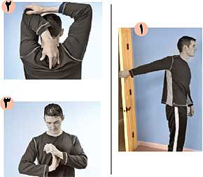 حركات كششی دستها به همراه تصویرحركات كششی، گردش خون عضلات را افزایش میدهد و آنها را برای حركات بعدی آماده میكند. هنگام انجام این حركات باید ظرفیت نهایی كشش خود را پیدا كنید و از آن جلوتر نروید چرا كه زیادهروی باعث آسیبدیدگی عضله میشود. فقط تا جایی پیش بروید كه احساس راحتی دارید و دردی حس نمیكنید. حركات كششی دستها علاوه بر آن كه اندامهای فوقانی را برای حركات بعدی آماده میكند باعث ورزیدگی دستها شده و انجام فعالیتهای روزمره را آسانتر مینماید. تمركز حركات كششی زیر بر عضلات بازو و ساعد است. حركت اول: پشت به یك در باز بایستید و با دست لبه در را از عقب بگیرید، طوری كه شست شما رو به سمت پایین قرار گیرد. حالا به آهستگی دست خود را به سمت بالا حركت دهید تا وقتی كشش را در قسمت جلوی بازو احساس كنید. 30 ثانیه در همین وضعیت بمانید. این حركت بیشتر روی كشش عضله دوسر تمركز میكند. این حركت را 5 بار برای هر دست تكرار كنید.