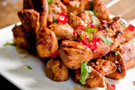 روی مرغ نمك و فلفل پاشیده و همراه با گوشت نمك زده در یك قابلمه 12 اینچی روی حرارت متوسط روبه زیاد برای مدت 12 دقیقه می‌پزیم، بعد زمان پخت از شروع تا پایان: 20 دقیقه می باشد .