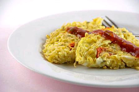ماكاروني را طبق دستور روي بستهبندي، در آب جوشانده و آبكشي كنيد. سپس آن را با چنگال هم بزنيد تا ماكارونيها از هم جدا شوند.يك تابه متوسط نچسب را روي حرارت گذاشته و روغن را در آن بريزيد. پياز را در آن تفت دهيد و گوجهفرنگي را به آن بيفزاييد تا يك دقيقه سرخ شود.ماكاروني و جعفري را در تابه بريزيد و هم بزنيد تا به مدت دو دقيقه مواد با هم سرخ شوند. در اين مرحله نمك و فلفل لازمه را بريزيد. اين مخلوط را طوري كف ماهيتابه پهن كنيد كه تمام مواد در همه جا به يك اندازه باشند. حال تخممرغها را به همراه دو قاشق غذاخوري آب و نمك هم زده و با حركتي دوراني روي آن بريزيد تا روي همه مواد را بگيرد. ( ميتوانيد براي اين كار تابه را بلند كرده و بگردانيد). حرارت را كم كنيد و در تابه را ببنديد تا تخممرغها سفت و زير آن طلايي شود. املت آماده شده را با سس كچاپ تزئين كنيد.