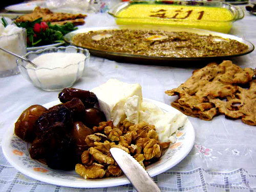 * بهتر است وعده افطار را با آب ولرم، چای، شیر با کمی عسل یا خرما و مقداری نان و پنیر کم نمک و ترجیحاً یک تا دو عدد گردو آغاز کنند.