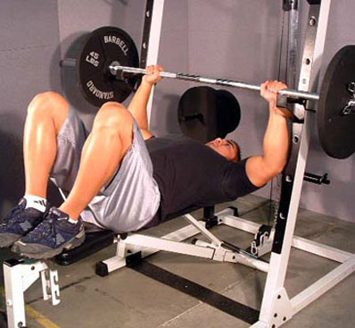 پرس سینه دست جمع: به یک طرفدار پرو پا قرص اجرای حرکات قدرتی وزنه آزاد یا اجرای حرکات با دستگاه اسمیت شوید. دامنه اجرای حرکات را به یک سوم بالایی محدود کنید. با محدود کردن دامنه اجرای حرکات میتوانید از وزنه های سنگین تری استفاده کنید. وزنه های سنگین در این دامنه بافت های عضلانی متفوتی را نسبت به حالت عادی وادار به رشد میکند. هالتر را به گونه ای در دست بگیرد که فاصله کف دست ها از هم به اندازه ۱۵ سانتی متر باشد. سپس هالتر را از روی پایه بردارید و مراقب باشید در هنگام پایین بردن هالتر، پشت بازو ها بیش از حد کشش پیدا نکنند. از وزنه ای استفاده کنید که قادر باشید با آن ۸ تکرار صحیح اجرا کنید. با محدود کردن دامنه حرکتی میتوانید تا ۵۰ % بیشتر از حالت عادی وزنه را افزایش دهید. یک ست با ۸ تکرار اجرا کنید، سپس ۳۰ ثانیه استراحت کرده و وزنه را ۱۰ % افزایش دهید و هر تعداد که میتوانید با آن اجرا کنید. معمولاٌ در تمام جلسات تمرین نسبت به ساعدها اجحاف صورت میگیرد ولی در اینجا دو حرکت آورده شده که میتواند برایتان ساعد هایی پر ابهت و چگال به ارمغان بیاورد که تاثیر واضحی بر روی نمای بازو میگذارند.