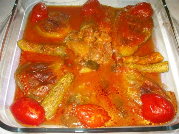 کدو را حلقه حلقه و بعد سرخ کنید. سپس کدو را با آب گوجه فرنگی و نمک و کره بپزید و آن قدر صبر کنید تا آب گوجه فرنگی جوش رفته و آبی برایش نماند سپس گوجه فرنگی ها را پوست بکنید و قطعه قطعه کرده بین کدو بچینید. تخم مرغ را در ظرفی بشکنید و با چنگال به هم بزنید و روی آن بریزید و روی حرارت کم بگذارید تا پخته شود.