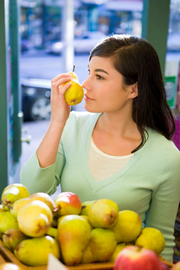چون گلابی رسیده خیلی زود فاسد میشود بنابراین گلابی هایی را انتخاب كنید كه هنوز نرسیده و كمی سفت هستند. آنها باید پوستی نرم، بدون له شدگی و كپك داشته باشند. رنگ گلابی با كیفیت معمولاً یك دست نیست. گلابی هایی كه سوراخ دارند و لكه های تیره روی آنهاست را خریداری نكنید. گلابی را باید در دمای اتاق قرار داد تا برسد. هنگامیكه پوست آن نرم شد گلابی رسیده و آماده خوردن است. اگر نمیخواهید گلابی های رسیده را مصرف كنید میتوانید آن را دریخچال بگذارید، در این صورت تا چند روز تازه میماند. اگر میخواهید زودتر برسند آنها را دریك كیسه كاغذی بریزید و در دمای اتاق قرار دهید. گلابی را در كیسه های پلاستیكی و كنار هم قرار ندهید چون اكسیژن كمتری به آنها میرسد و به طور طبیعی گاز اتیلن از خود ساطع میكنند و خیلی زود میرسند در نتیجه باعث فاسد شدن آنها میشود. گلابی را باید دور از مواد غذایی كه بو میدهند قرار داد چون گلابی بو را به خود جذب میكند.
