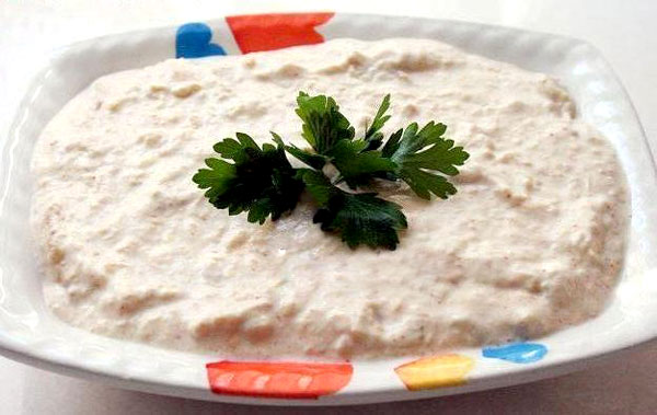 ابتدا بادمجان را كبابی و با نوك چاقو در چند نقطه آن سوراخ ایجاد كنید. سپس آن را روی حرارت بگذارید تا به حالتی برسد كه كاملا نرم شده و عصاره آن بیرون بزند. آن را از روی حرارت بردارید و كنار بگذارید تا خنك شود. وقتی به حدی رسید كه توانستید آن را با دست بگیرید، پوست آن را بكنید و از ساقه جدا كنید. بادمجان را درون مخلوط‌كن بگذارید ولی عصاره آن را اضافه نكنید. آن را خوب مخلوط كنید تا كاملا یكنواخت شود. می‌توانید این كار را با چنگال نیز انجام دهید. حالا سیر را بكوبید تا كاملا خرد شود. آن را به همراه ماست و نعناع داخل مخلوط‌كن ریخته و هم بزنید. سپس آن را بچشید و ادویه را اندازه كنید. ابتدا مواد ما كمی شل است ولی اگر مدتی كنار بگذارید، خود را می‌گیرد. سپس آن را داخل ظرف دلخواه خود بریزید، تزئین كرده و سرو كنید. از این غذا به عنوان دسر و میان وعده نیز می‌توانید استفاده كنید.