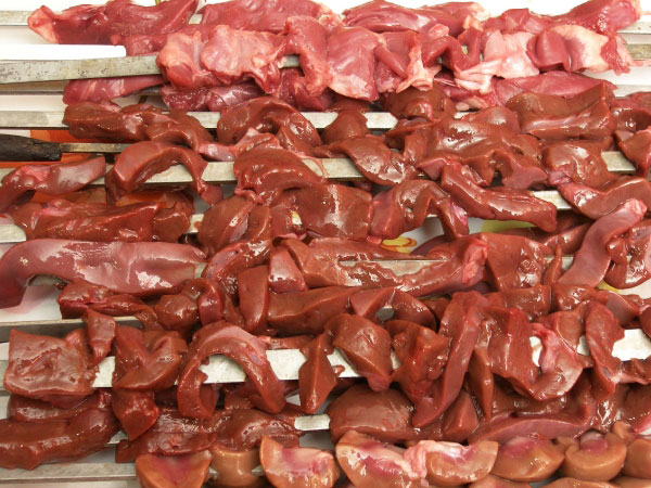 نگهداری و آماده سازیدر موقع خرید امعا و احشا باید بهداشت و سلامت آن ها در نظر گرفته شود و هنگام آماده کردن آن ها نیز از روش های پختی استفاده کنید که طی آن این مواد غذایی به خوبی و به طور کامل پخته شوند، زیرا پخت به صورت کبابی و یا سرخ شده و ناقص آن ها می تواند باعث انتقال عوامل بیماری زا و ورود انواع میکروب ها به بدن شود. مقایسه ترکیب جگر گوسفند و گوساله در هر واحد: ترکیب درهر سروینگ انرژی (کالری)، انرژی حاصل از چربی (کالری)، چربی(گرم)، کربوهیدرات (گرم)، پروتئین (گرم)، کلسترول (میلی گرم)، سدیم (میلی گرم). جگر گوساله خام (113 گرم) : 157 ، 51 ، 6 ، 2 ، 23 ، 419 ، 79 . جگر گوسفندخام (28گرم) : 39 ، 12 ، 1 ، 1 ، 6 ،94 ، 22 .