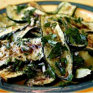 2- کدو ها را داخل ظرف مناسب سرو می ریزیم. داخل یک کاسه مناسب، ¼ پیمانه نعنای ساتوری شده، سرکه و سیر ریز خرد شده را می ریزیم و آنها را با هم مخلوط می کنیم. سپس این مخلوط را روی کدوها می ریزیم. این مواد را داخل یخچال می گذاریم تا برای سرو آماده شود اما زمان سرو باید هم دمای اتاق شود.