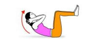 روی کمرتان دراز بکشید، زانوها را خم کنید و دست ها را پس گردن بگذارید. زانوی خم شده را به سمت سینه بالا بیاورید. در حالی که بازدم را به بیرون می دهید، سر و شانه هایتان را بالا بیاورید، انگار می خواهید زانوها را با آرنج هایتان لمس کنید.
