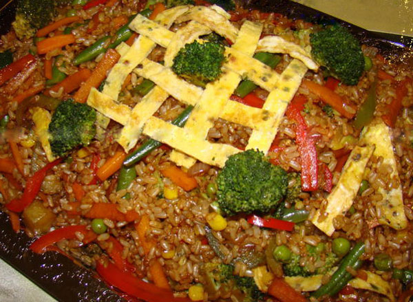 برنج قهوه ای سرخ شده با سبزیجات