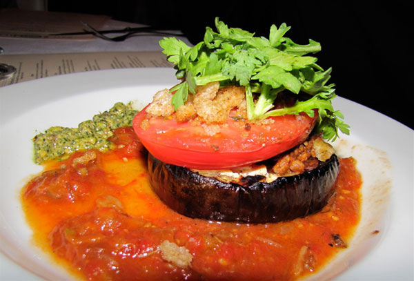 3- بادمجان ها را در ظرف مورد نظر قرار داده و با قاشق ماست را روی آن ها بریزید. سپس روی هر برش بادمجان 1 قاشق غذاخوری سرپر از سس گوجه زنجبیلی آماده بریزید و گشنیز خرد شده روی آن بپاشید. گرم سرو کنید.