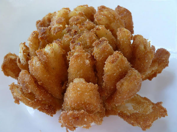 سفیده های تخم مرغ رو یا دستگاه بزنین تا کاملاً کف کنه و سفید بشه. ادویه رو با پودر نان سوخاری مخلوط کنین. پورد سیر و آویشن رو با آرد مخلوط کنین. پیاز ها رو درسته پوست کنده و از درازا  یک سانتی برش بزنین ولی ته یپاز رو که به ریشه وصله از بیخ نبرین و تا انتها برش ندین که از هم جدا نشن. بعد لایه ها رو با دست از هم جدا کنین و یکساعت داخل آبسرد خیس کنین. وقتی پیازها خشک شدن، پیاز رو توی آرد بزنین و بعد توی سفیده کف کرده فرو برده و بعد به پودر نان سوخاری آغشته کنین و بعد با اسپری روغن بهشون بپاشین و داخل سینی فر بذارین. فر رو از قبل داغ کنین و روی 200 درجه سانتیگراد تنظیم کنین و مدت بیست دقیقه توی فر بذارین تا سوخاری بشه. با سس ماست و موسیر یا هر سس دیگه ای که مایلین سرو کنین.
