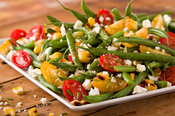 تخم مرغ های رو رنده کرده و با روغن زیتون و نمک و فلفل و کمی سرکه آماده بذارین بعنوان سس برای استفاده روی سالاد. ترخون و لوبیا و گوجه فرنگی ها خرد شده رو با هم مخلوط کنین و نمک و فلفل اضافه کنین و تخمه کدو ها رو روش بپاشین و سرو کنین.
