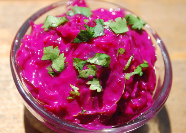 لبو ها را پوست بگیرید و توی ماست خرد یا رنده کنید و سپس بهش کمی نمک بزنین و با سبزی هایی مثل جعفری تزیین کنین. حالا یک دسر سالم و خوشمزه و فوری دارین. هرچه که بیشتر بمونه لبوها بیشتر رنگ پس میدن و قشنگتر میشه.