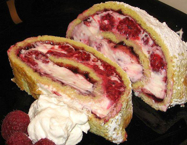 4. نیمی از توت فرنگی را به ماست اضافه كنید و روی رولت پهن كنید. دوباره خمیر را رول كنید و آن را با كمی توت فرنگی تزئین كنید. میتوانید باقی مانده توت فرنگی را مخلوط كنید و بهعنوان سس برای این دسر استفاده كنید.