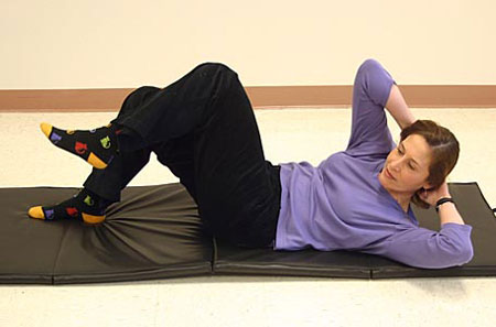 به پشت دراز بکشید در حالی که زانوهایتان خم شده است. زانوهایتان را کنار هم قرار دهید و شانههایتان را روی زمین تکیه دهید. زانوهایتان را به یک طرف بچرخانید تا زمانی که در کمر یا لگنتان احساس کشش کنید. 30 تا 60 ثانیه در این حالت بمانید.