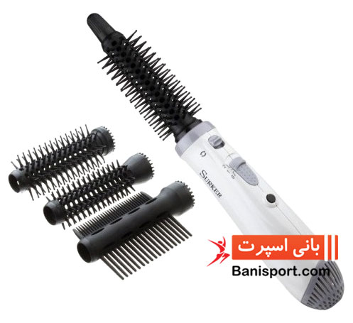سشوار «سورکر» (Surker) مدل «DW-23» دارای موتور 400 وات DC و سه شانه مختلف قابل تعویض است. این سشوار ظاهری شبیه به سشوارهای چرخشی دارد اما چرخشی نیست. طراحی سشوار استفاده از شانه‌های مختلف را امکان‌پذیر کرده است. دو شانه برای ایجاد فر ریز و درشت و یک شانه برای خشک‌کردن و صاف کردن موها ارائه شده است. البته قطر شانه‌های فر کردن تفاوت چندانی با هم نمی‌کنند. شانه‌ی صاف کردن نیز دوطرفه بوده و دارای دندانه‌های ریز و درشت است. روی دستگاه دکمه‌ی آزاد کردن شانه‌ها وجود دارد که با حرکت دادن آن شانه می‌تواند به شکل دستی در جای خود بچرخد. برای تعویض شانه باید قطعه پلاستیکی انتهای شانه را به شکل پیچی باز کرد و شانه را بیرون آورد. برای تنظیم سرعت و درجه حرارت باد یک دکمه‌ی دوحالته وجود دارد.