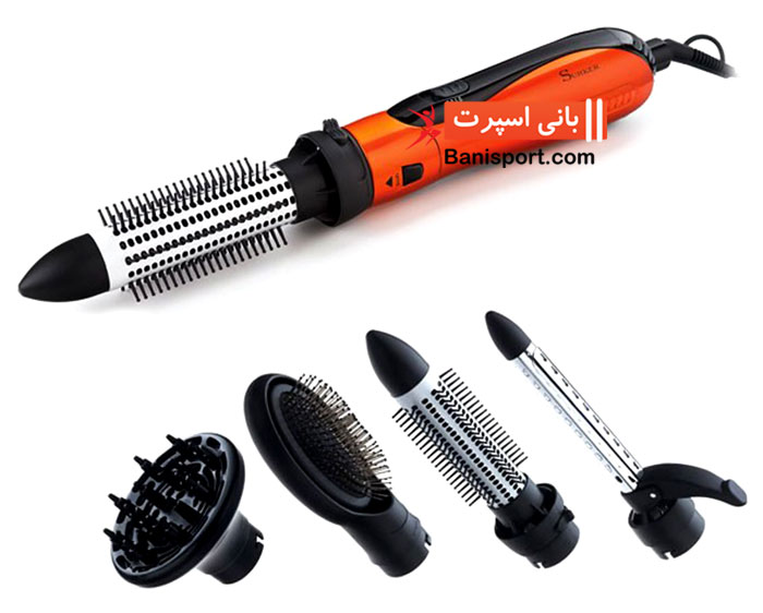 - دارای چهار سری مختلف شامل:1- فر کننده شانه‌دار با دکمه‌ی فنری تو رفتن شانه‌ها 2- فر کننده‌ی فلزی با گیره‌ی مو 3- نیم برس 4- دیسپانسر