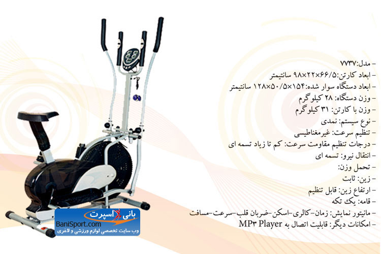 اسکی فضایی 7737 : - مانیتور نمایش : زمان – کالری – اسکن – ضربان قلب – سرعت – مسافت |
