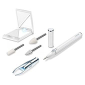 سه محصول در یک بسته شامل مانیکور مدادی، آینه کیفی چراغدار، موچین چراغدار |