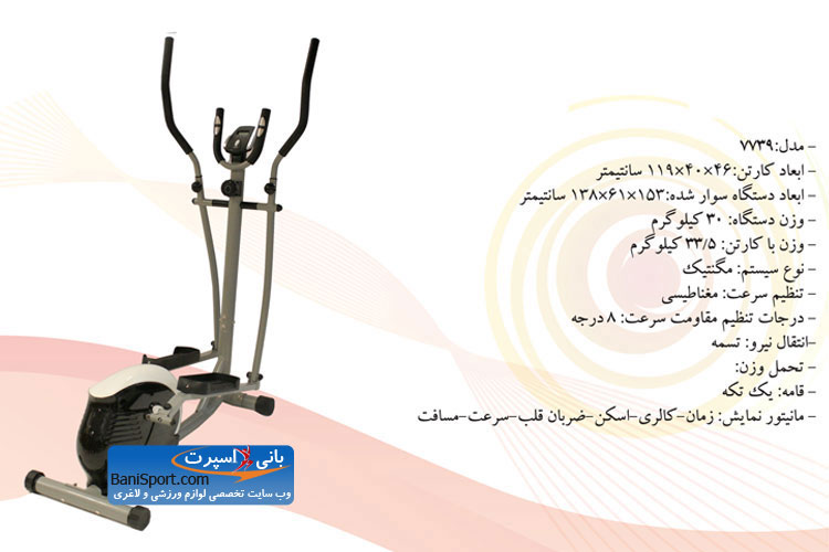 اسکی فضایی 7739: - مانیتور نمایش : زمان – کالری – اسکن – ضربان قلب – سرعت – مسافت |