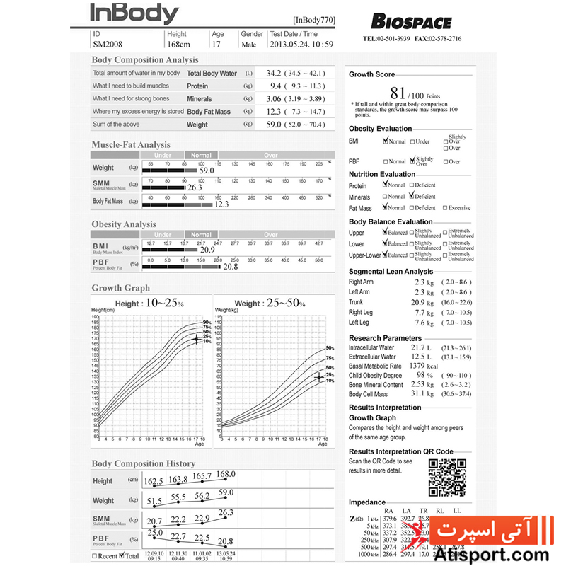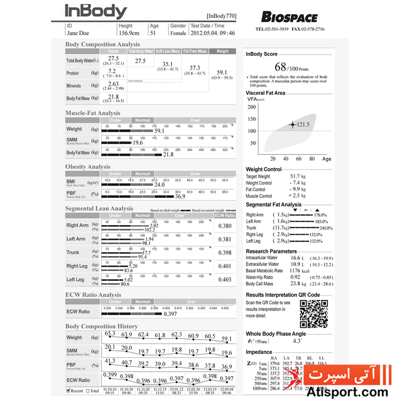 - محاسبه امتیازInBody، پیشنهاد کنترل عضله و چربی با تعیین وزن ایـده آل