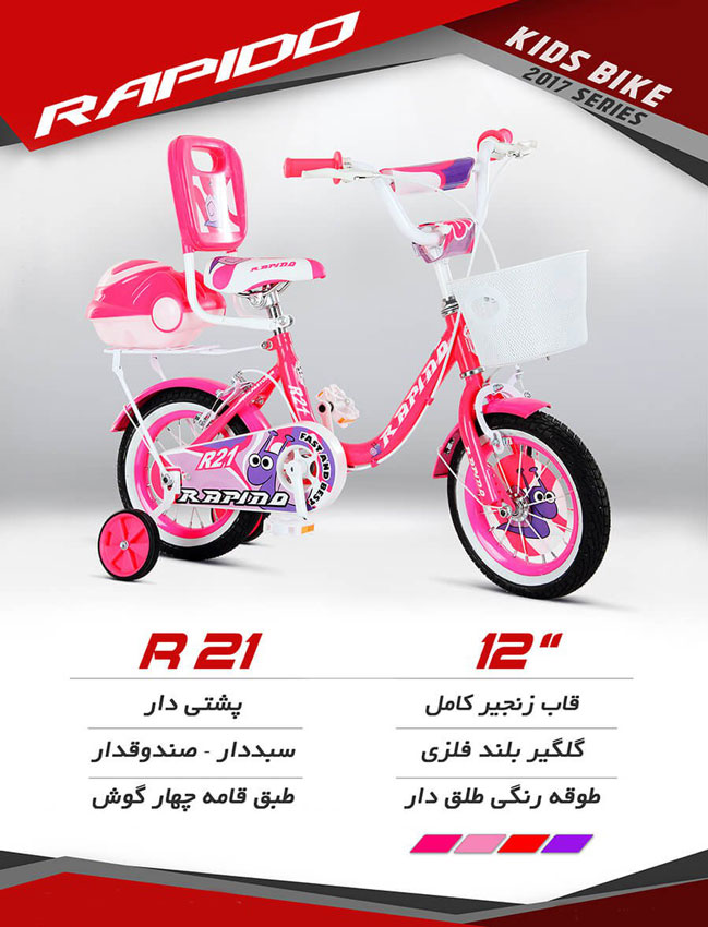 قیمت دوچرخه بچگانه سایز 12 Rapido R21 2017 با مشخصات و 1 سال گارانتی بدنه شرکت مهرآیین وندا در آتی اسپرت - مشاوره تخصصی خرید