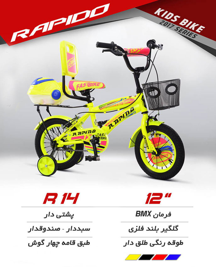 قیمت دوچرخه بچگانه سایز 12 Rapido R14 2017 با مشخصات و 1 سال گارانتی بدنه شرکت مهرآیین وندا در آتی اسپرت - مشاوره تخصصی خرید
