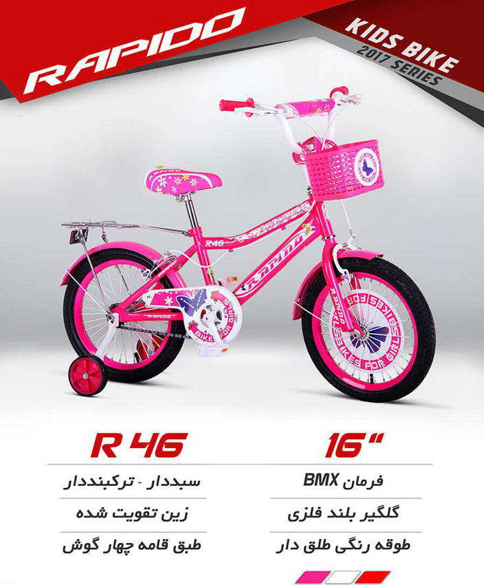 قیمت دوچرخه بچگانه سایز 16 Rapido R46 2017 با مشخصات و 1 سال گارانتی بدنه شرکت مهرآیین وندا در آتی اسپرت - مشاوره تخصصی خرید