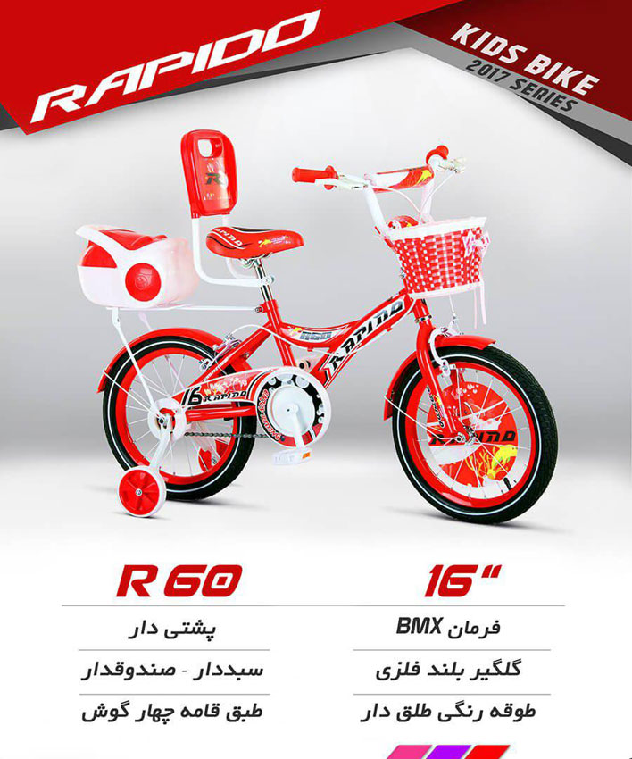 قیمت دوچرخه بچگانه سایز 16 Rapido R60 2017 با مشخصات و 1 سال گارانتی بدنه شرکت مهرآیین وندا در آتی اسپرت - مشاوره تخصصی خرید