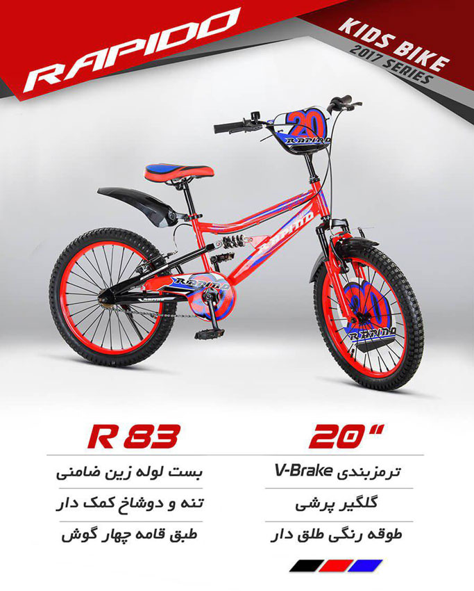 قیمت دوچرخه بچگانه سایز 20 Rapido R83 2017 با مشخصات و 1 سال گارانتی بدنه شرکت مهرآیین وندا در آتی اسپرت - مشاوره تخصصی خرید