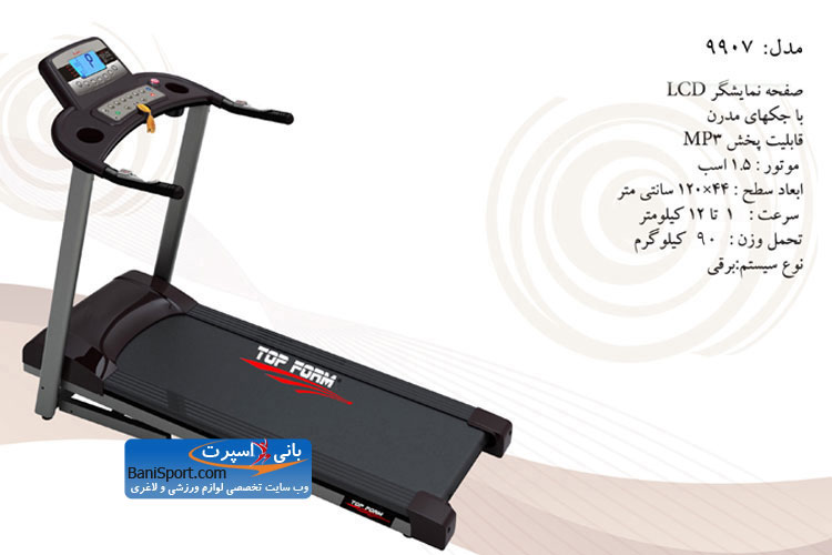 قیمت تردمیل تاپ فرم 9907 با مشخصات و يكسال گارانتي و 5 سال خدمات پس از فروش شرکت تاپ فرم در آتی اسپرت - مشاوره تخصصی خرید