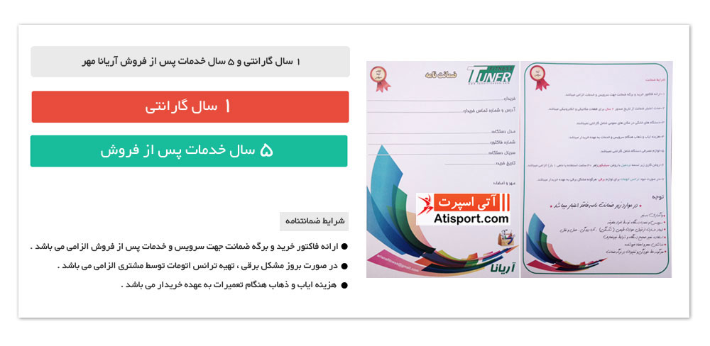 1 سال گارانتی و 5 سال خدمات پس از فروش آریانا مهر