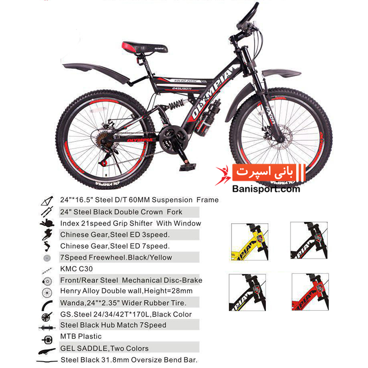 دوچرخه Olympia bike 2424 : - سایز : 24 دوچرخههای کوهستان دارای مدل متنوعی میباشند اما بطور کلی این دوچرخهها را میتوان در پنج دسته مختلف تقسیمبندی کرد که هر یک از آنها دارای ویژگیهای منحصر به فرد برای سواری در شرایط مختلف میباشند. برای اینکه بتوانید دوچرخه کوهستان متناسب با علاقمندی خود را انتخاب کنید لازم است ابتدا تعیین کنید که قرار است کجا و چه نوع زمینی را برای دوچرخهسواری انتخاب میکنید. این موضوع کاملا وابسته به آن است که شما چه انتظاری از یک دوچرخه کوهستان داشته باشید. دوچرخههای کوهستان از لحاظ ظاهری دارای لاستیک زخیم و عاجدار جهت اصطکاک زیاد در شرایط کوهستانی و افزایش راندمان دوچرخهسوار میباشد. فرمان در این مدل، به منظور ایجاد دید کافی و کنترل بهتر به صورت صاف (Flat) در نظر گرفته شده است، همچنین برای گرفتن ضربات و نرم کردن حرکات، دارای کمک فنرهایی در بدنه دوچرخه میباشند که در صورت عدم نیاز به هر یک میتوان آنها را قفل نمود. کمک فنرها میتوانند تاثیر بسیار زیادی در افزایش راندمان و کیفیت دوچرخهسواری داشته باشند. اما بر خلاف باور عموم، استفاده از آنها در تمام شرایط صحیح نمیباشد. فعال بودن کمک فنرها در هنگام بالا رفتن از سربالاییها موجب هدر رفت انرژی زیادی از دوچرخهسوار میگردد، لذا امکان قفل کردن کمک فنر باعث میشود بهراحتی تپهها را بالا رفته و مانع از اتلاف انرژی گردد. همچنین در دوچرخههای کوهستان برای عملکرد بهتر در سطوح ناهموار از ترمزهای قدرتمند دیسکی از نوع مکانیکی یا هیدرولیکی استفاده میکنند که این امر موجب کنترل بهتر دوچرخه در مواجهه با شرایط ناگهانی میشود. |
