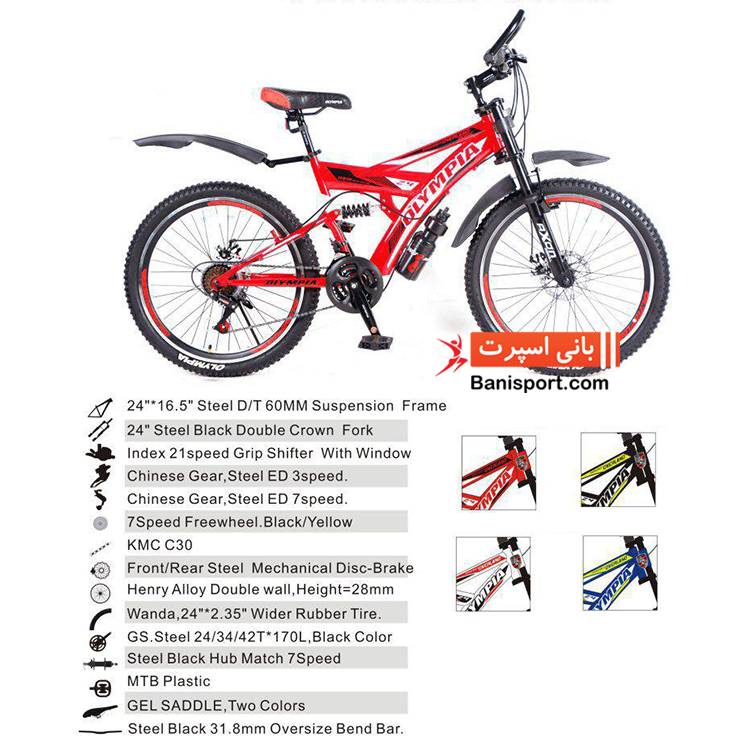 دوچرخه Olympia bike 2417 : - سایز : 24 دوچرخههای کوهستان دارای مدل متنوعی میباشند اما بطور کلی این دوچرخهها را میتوان در پنج دسته مختلف تقسیمبندی کرد که هر یک از آنها دارای ویژگیهای منحصر به فرد برای سواری در شرایط مختلف میباشند. برای اینکه بتوانید دوچرخه کوهستان متناسب با علاقمندی خود را انتخاب کنید لازم است ابتدا تعیین کنید که قرار است کجا و چه نوع زمینی را برای دوچرخهسواری انتخاب میکنید. این موضوع کاملا وابسته به آن است که شما چه انتظاری از یک دوچرخه کوهستان داشته باشید. دوچرخههای کوهستان از لحاظ ظاهری دارای لاستیک زخیم و عاجدار جهت اصطکاک زیاد در شرایط کوهستانی و افزایش راندمان دوچرخهسوار میباشد. فرمان در این مدل، به منظور ایجاد دید کافی و کنترل بهتر به صورت صاف (Flat) در نظر گرفته شده است، همچنین برای گرفتن ضربات و نرم کردن حرکات، دارای کمک فنرهایی در بدنه دوچرخه میباشند که در صورت عدم نیاز به هر یک میتوان آنها را قفل نمود. کمک فنرها میتوانند تاثیر بسیار زیادی در افزایش راندمان و کیفیت دوچرخهسواری داشته باشند. اما بر خلاف باور عموم، استفاده از آنها در تمام شرایط صحیح نمیباشد. فعال بودن کمک فنرها در هنگام بالا رفتن از سربالاییها موجب هدر رفت انرژی زیادی از دوچرخهسوار میگردد، لذا امکان قفل کردن کمک فنر باعث میشود بهراحتی تپهها را بالا رفته و مانع از اتلاف انرژی گردد. همچنین در دوچرخههای کوهستان برای عملکرد بهتر در سطوح ناهموار از ترمزهای قدرتمند دیسکی از نوع مکانیکی یا هیدرولیکی استفاده میکنند که این امر موجب کنترل بهتر دوچرخه در مواجهه با شرایط ناگهانی میشود.ناگهانی میشود. |