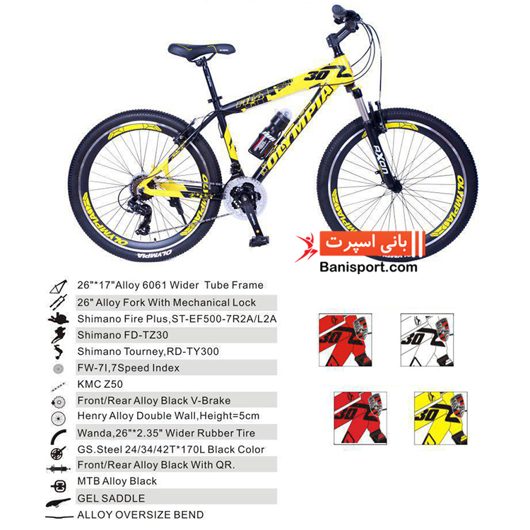 دوچرخه Olympia bike 26412 : - سایز : 26 دوچرخههای کوهستان دارای مدل متنوعی میباشند اما بطور کلی این دوچرخهها را میتوان در پنج دسته مختلف تقسیمبندی کرد که هر یک از آنها دارای ویژگیهای منحصر به فرد برای سواری در شرایط مختلف میباشند. برای اینکه بتوانید دوچرخه کوهستان متناسب با علاقمندی خود را انتخاب کنید لازم است ابتدا تعیین کنید که قرار است کجا و چه نوع زمینی را برای دوچرخهسواری انتخاب میکنید. این موضوع کاملا وابسته به آن است که شما چه انتظاری از یک دوچرخه کوهستان داشته باشید. دوچرخههای کوهستان از لحاظ ظاهری دارای لاستیک زخیم و عاجدار جهت اصطکاک زیاد در شرایط کوهستانی و افزایش راندمان دوچرخهسوار میباشد. فرمان در این مدل، به منظور ایجاد دید کافی و کنترل بهتر به صورت صاف (Flat) در نظر گرفته شده است، همچنین برای گرفتن ضربات و نرم کردن حرکات، دارای کمک فنرهایی در بدنه دوچرخه میباشند که در صورت عدم نیاز به هر یک میتوان آنها را قفل نمود. کمک فنرها میتوانند تاثیر بسیار زیادی در افزایش راندمان و کیفیت دوچرخهسواری داشته باشند. اما بر خلاف باور عموم، استفاده از آنها در تمام شرایط صحیح نمیباشد. فعال بودن کمک فنرها در هنگام بالا رفتن از سربالاییها موجب هدر رفت انرژی زیادی از دوچرخهسوار میگردد، لذا امکان قفل کردن کمک فنر باعث میشود بهراحتی تپهها را بالا رفته و مانع از اتلاف انرژی گردد. همچنین در دوچرخههای کوهستان برای عملکرد بهتر در سطوح ناهموار از ترمزهای قدرتمند دیسکی از نوع مکانیکی یا هیدرولیکی استفاده میکنند که این امر موجب کنترل بهتر دوچرخه در مواجهه با شرایط ناگهانی میشود. |