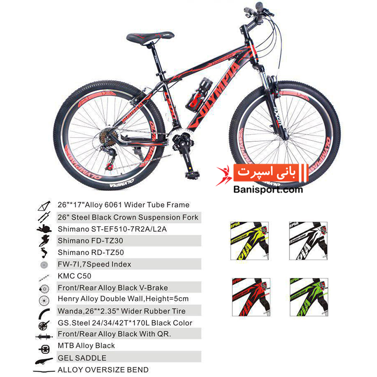 دوچرخه Olympia bike 2671 : - سایز : 26 دوچرخههای کوهستان دارای مدل متنوعی میباشند اما بطور کلی این دوچرخهها را میتوان در پنج دسته مختلف تقسیمبندی کرد که هر یک از آنها دارای ویژگیهای منحصر به فرد برای سواری در شرایط مختلف میباشند. برای اینکه بتوانید دوچرخه کوهستان متناسب با علاقمندی خود را انتخاب کنید لازم است ابتدا تعیین کنید که قرار است کجا و چه نوع زمینی را برای دوچرخهسواری انتخاب میکنید. این موضوع کاملا وابسته به آن است که شما چه انتظاری از یک دوچرخه کوهستان داشته باشید. دوچرخههای کوهستان از لحاظ ظاهری دارای لاستیک زخیم و عاجدار جهت اصطکاک زیاد در شرایط کوهستانی و افزایش راندمان دوچرخهسوار میباشد. فرمان در این مدل، به منظور ایجاد دید کافی و کنترل بهتر به صورت صاف (Flat) در نظر گرفته شده است، همچنین برای گرفتن ضربات و نرم کردن حرکات، دارای کمک فنرهایی در بدنه دوچرخه میباشند که در صورت عدم نیاز به هر یک میتوان آنها را قفل نمود. کمک فنرها میتوانند تاثیر بسیار زیادی در افزایش راندمان و کیفیت دوچرخهسواری داشته باشند. اما بر خلاف باور عموم، استفاده از آنها در تمام شرایط صحیح نمیباشد. فعال بودن کمک فنرها در هنگام بالا رفتن از سربالاییها موجب هدر رفت انرژی زیادی از دوچرخهسوار میگردد، لذا امکان قفل کردن کمک فنر باعث میشود بهراحتی تپهها را بالا رفته و مانع از اتلاف انرژی گردد. همچنین در دوچرخههای کوهستان برای عملکرد بهتر در سطوح ناهموار از ترمزهای قدرتمند دیسکی از نوع مکانیکی یا هیدرولیکی استفاده میکنند که این امر موجب کنترل بهتر دوچرخه در مواجهه با شرایط ناگهانی میشود. |
