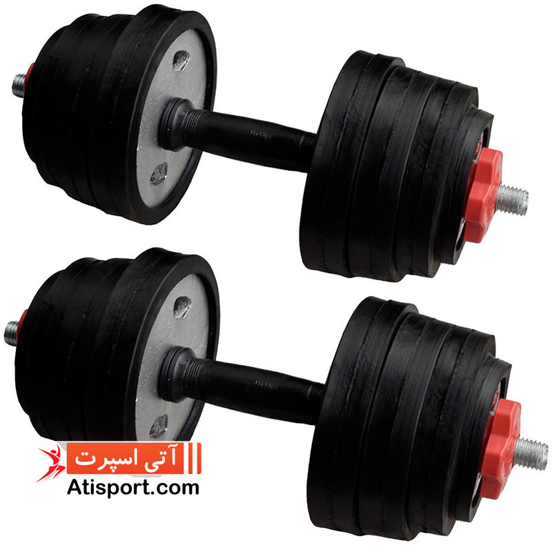 - دارای دسته دمبل با مهره فلزی و روکش پلاستیکی و قابلیت تغییر وزن دمبل