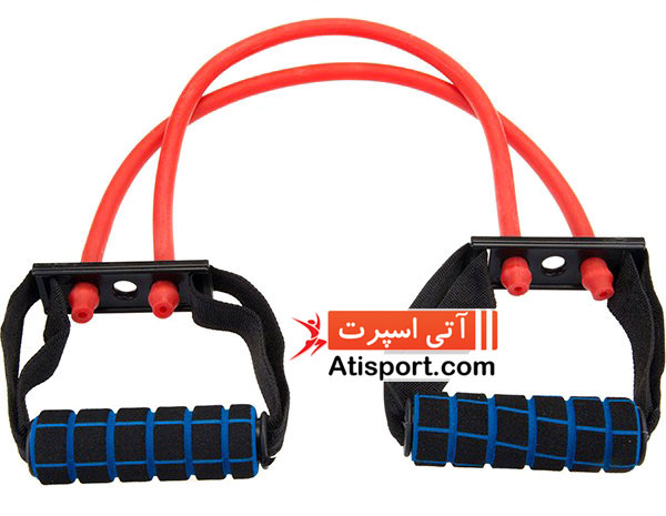کش ورزشی دوتایی قوی از جنس لاتکس با دسته فومی و بند های پارچه ای مخصوص آقایان به طول حدود 75 سانتی متر می باشد. این کش که دو لایه بوده از دوعدد تیوب کش به رنگ قرمز تشکیل شده و مقاومت آن بیشتر از رنگ آبی و سیز بوده و برای آقایان طراحی شده است.