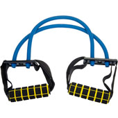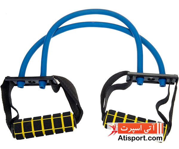 کش ورزشی دوتایی ضعیف از جنس لاتکس با دسته فومی و بند های پارچه ای مخصوص خانم ها به طول حدود 75 سانتی متر می باشد. کش این محصول از رنگ آبی است که نسبت به رنگ قرمز ضعیف تر می باشد و برای خانم ها توصیه می شود.