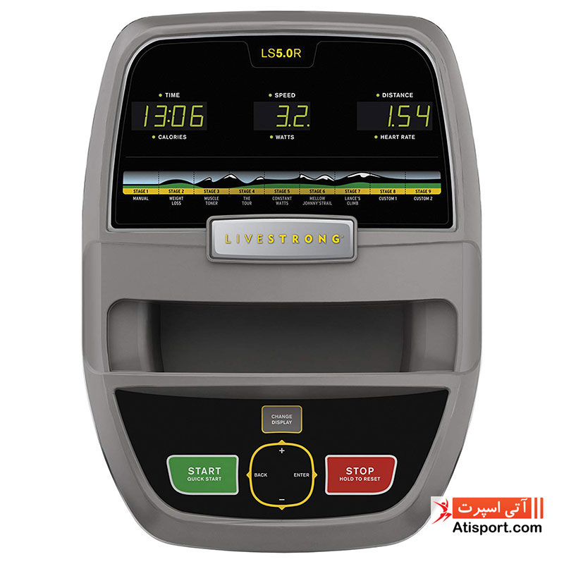 - دوچرخه ثابت پشتی دار LS5، دارای نمایش ضربان قلب از طریق تماس دست می باشد.