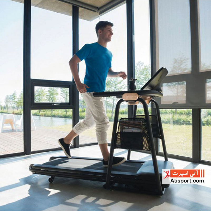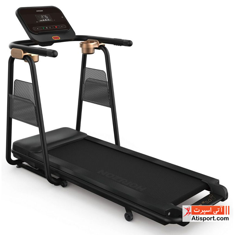 تردمیل هورایزن HORIZON TT5.0 تردمیلی خانگی، تک کاره، تحت لیسانس امریکا و ساخت کشور چین بوده و از کیفیت فوق العاده ای برخوردار است. تردمیل هورایزن دارای موتوری با قدرت 2.75 اسب بخار می باشد که تحمل وزن 115 کیلویی را برای کاربر فراهم می کند. ابعاد این دستگاه به طول: 180 عرض: 84 و ارتفاع: 132 سانتی متر می باشد. سرعت این دستگاه ورزشی از 0.8 تا 16 کیلومتر بر ساعت قابل تنظیم است و دارای شیب برقی قابل تنظیم تا 10 درجه می باشد. تردمیل هورایزن HORIZON TT5.0 دارای صفحه نمایش ال سی دی بوده که سرعت، مسافت، زمان، ضربان قلب، کالری مصرفی و شیب را نشان می دهد و دارای 8 برنامه تمرینی اتوماتیک و دستی پیش فرض بوده و کلید توقف اضطراری جهت توقف سریع دستگاه می باشد.