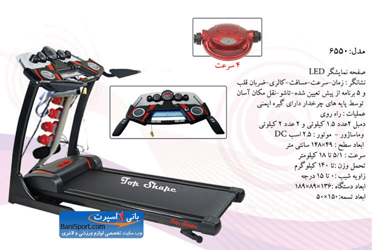 تردمیل تاپ شیپ 6550 با ماساژور 4 سرعت :