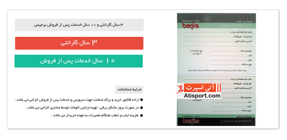 3 سال گارانتی و 10 سال خدمات پس از فروش برجیس