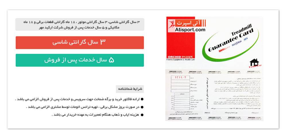 3 سال گارانتی شاسی، 3 سال گارانتی موتور ، 18 ماه گارانتی قطعات برقی و مکانیکی و 5 سال خدمات پس از فروش شرکت ارکید مهر