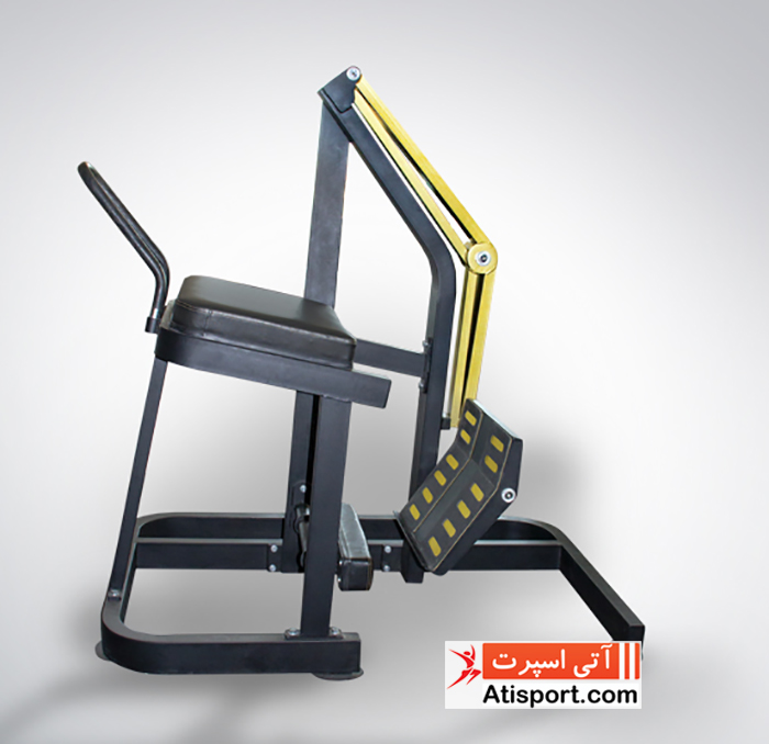 روی دستگاه مستقر شده .برای ثبات بیشتر دستگیره دستگاه را گرفته و پا را کنترل شده بر روی صفحه گلات قرار داده و با فشار عضله سرینی بازویی دستگاه را به سمت عقب و بالا به حرکت درآورید و بعد به نقطه شروع برگردید.